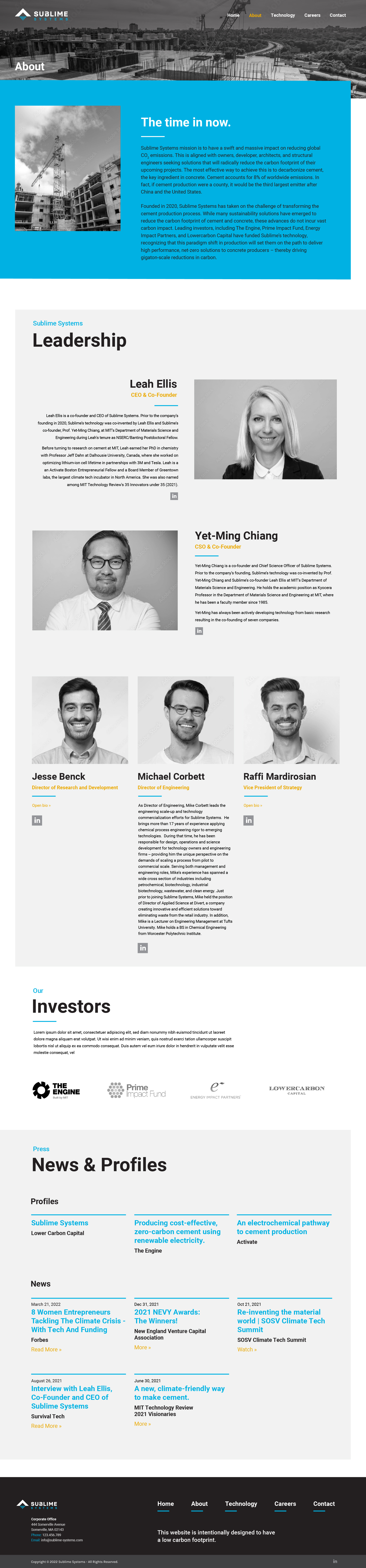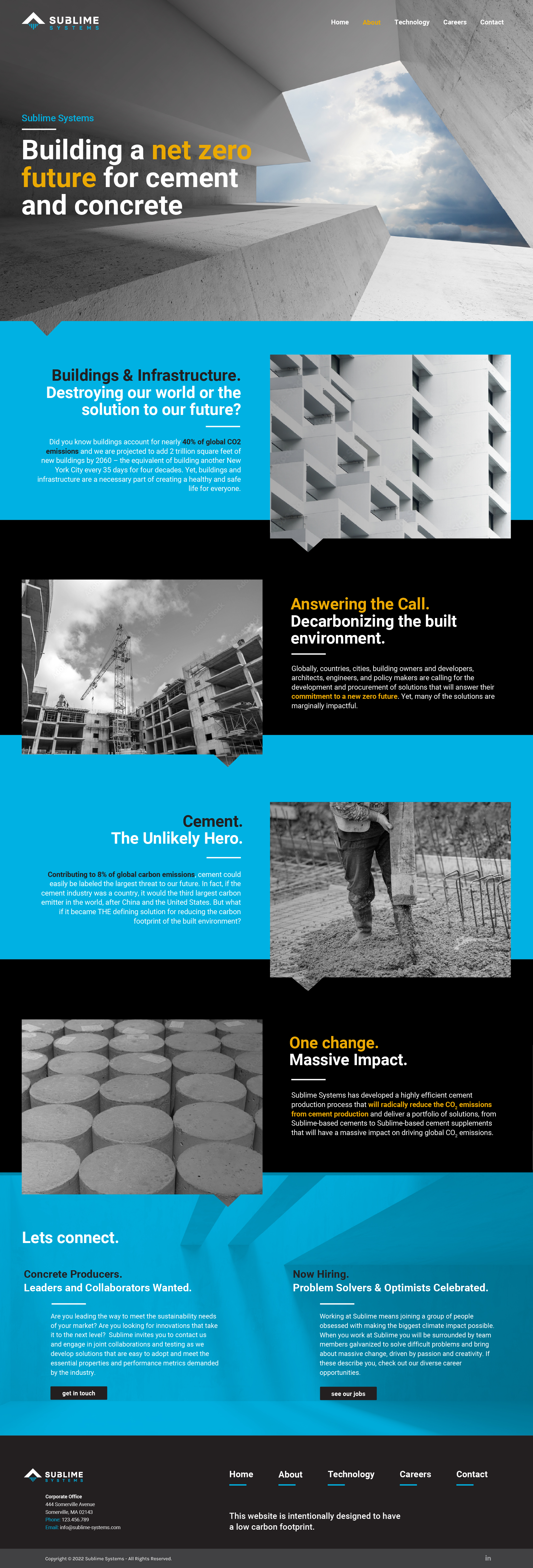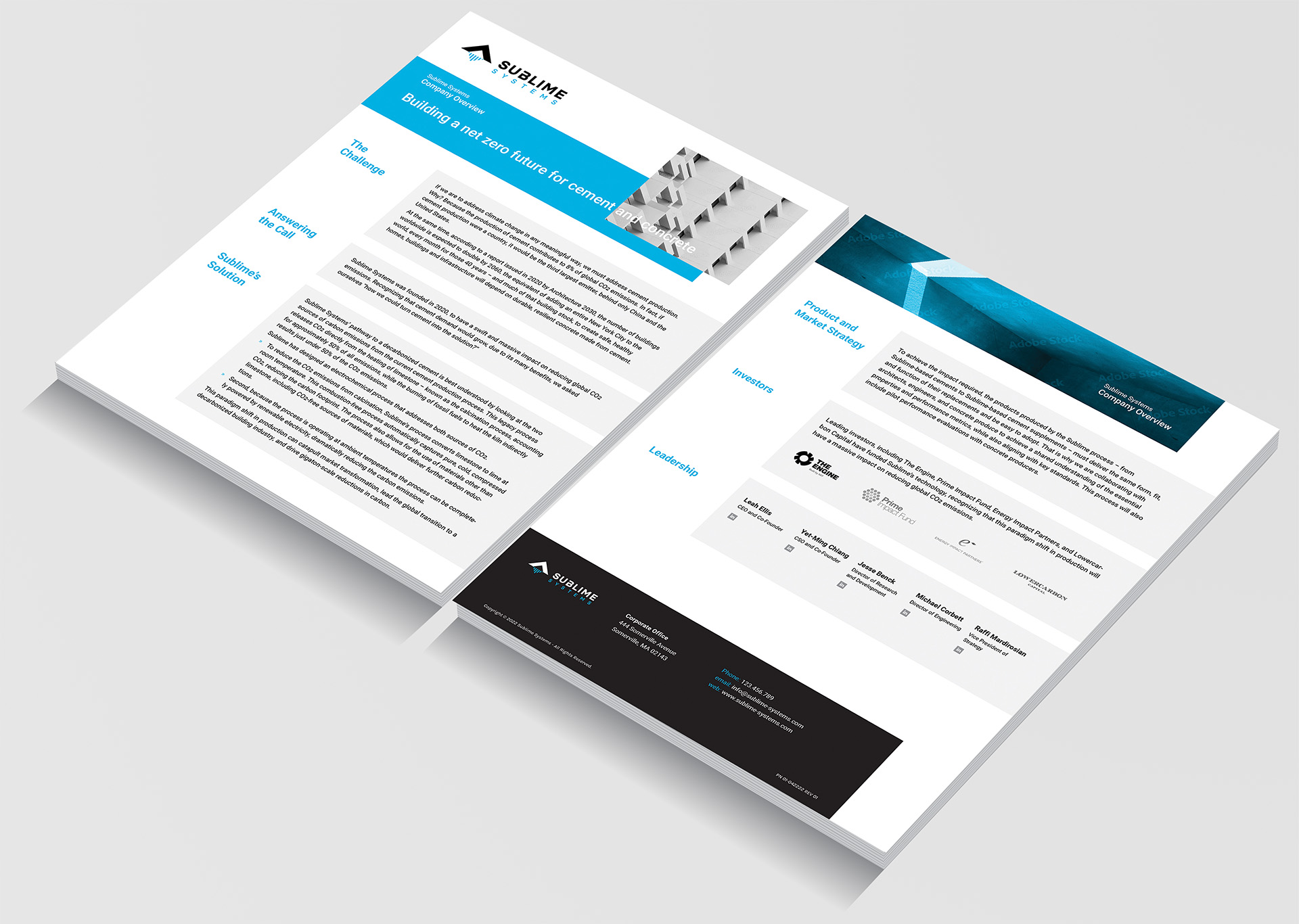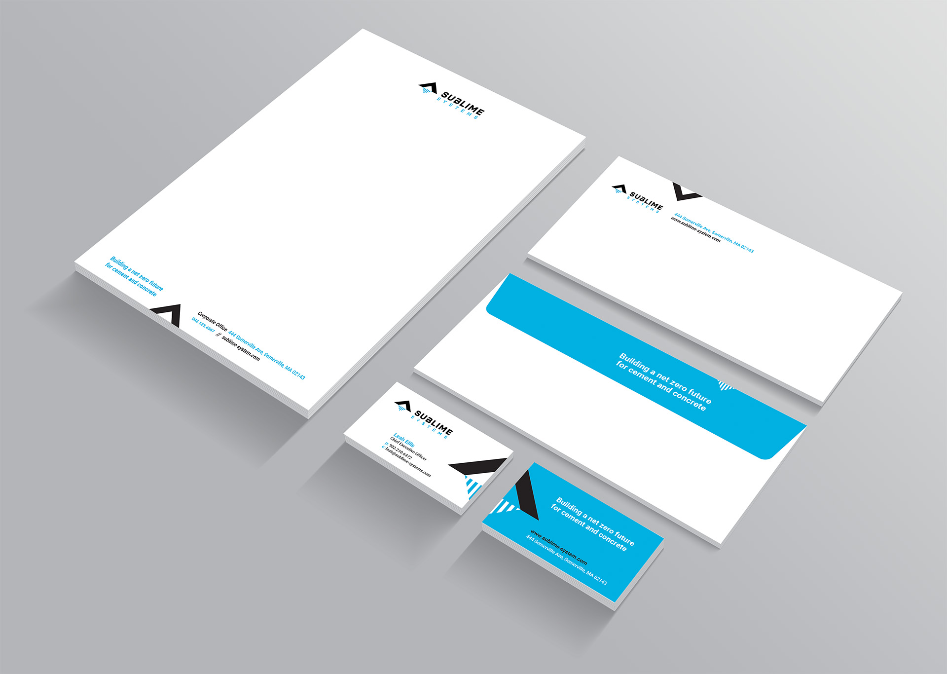 The scope of work included a comprehensive brand refresh encompassing a refined logo, a new color palette, website design, and supporting collateral. The goal was to modernize the company’s visual identity while preserving its core essence. A key design motif—the triangle element from the original logo—was expanded into a versatile visual device used throughout the new identity system. It appears across digital and print applications, reinforcing brand recognition and symbolizing structure, innovation, and forward momentum. The result is a cohesive, contemporary brand experience that reflects Sublime Systems’ leadership in sustainable materials and clean technology.